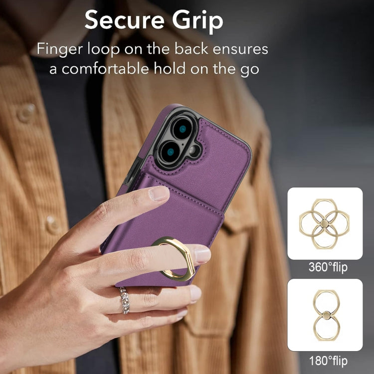 Funda para Teléfono con Anillo para Tarjeta Antirrobo Rfid iPhone 16 (Morado Oscuro)