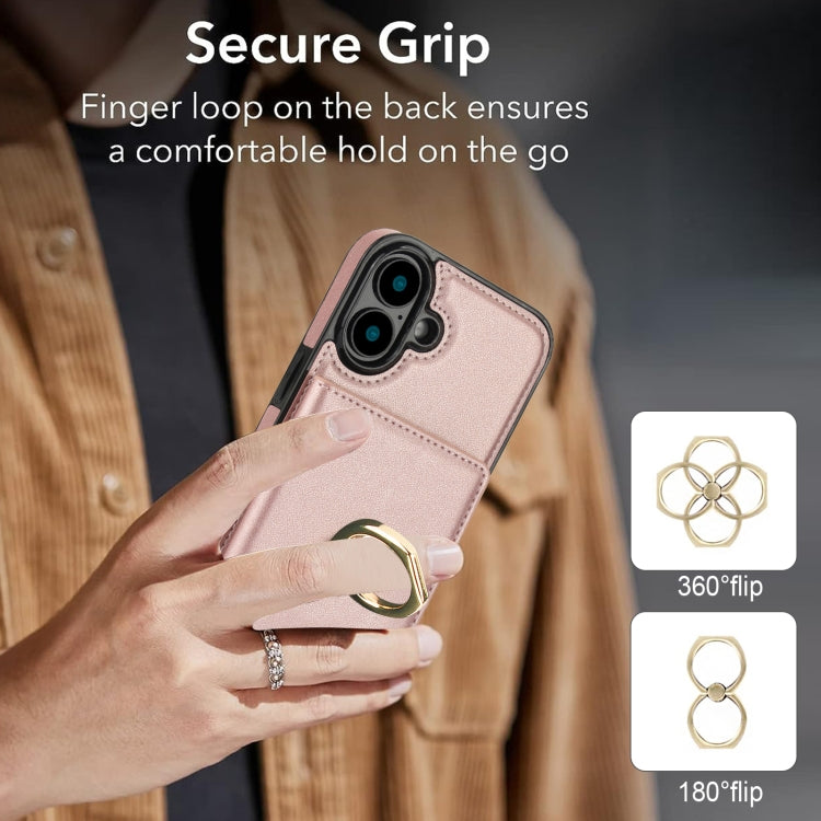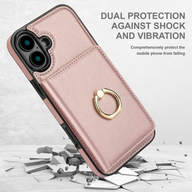 Funda para Teléfono con Anillo y Tarjeta Antirrobo Rfid para iPhone 16 (Oro Rosa)