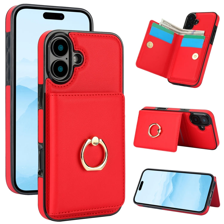 Funda para Teléfono con Anillo para Tarjeta Antirrobo Rfid para iPhone 16 (Rojo)