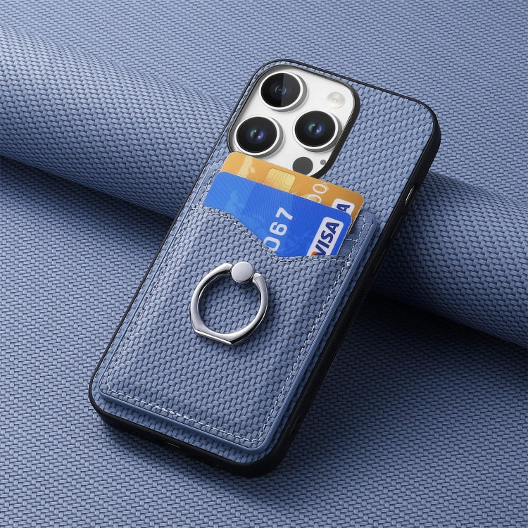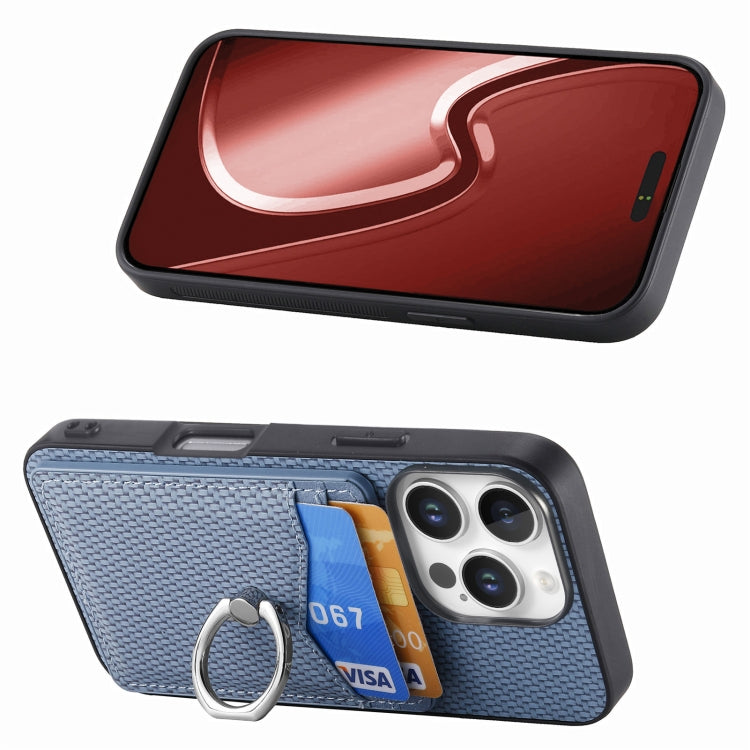 Funda para Teléfono iPhone 16 Pro Tipo Billetera con Anillo y Tarjetero Fibra de Carbono (Azul)