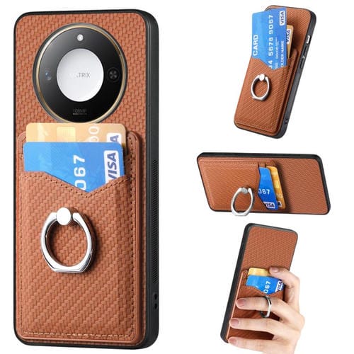 Funda para Teléfono Honor X60 con Anillo y Billetera Fibra de Carbono (Marrón)