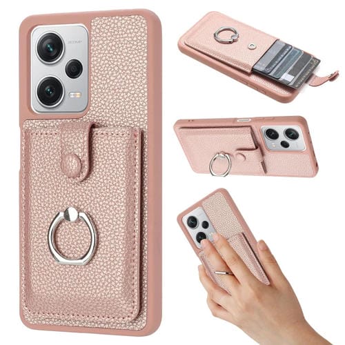 Funda para Teléfono con Anillo y Diseño de Textura de Lichi para Redmi Note 12 Pro 5G (Oro Rosa)