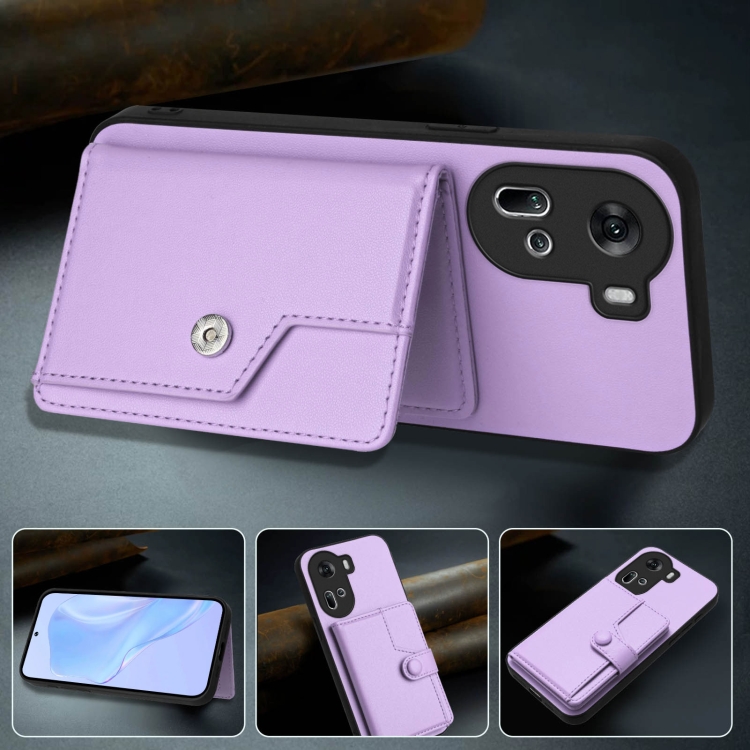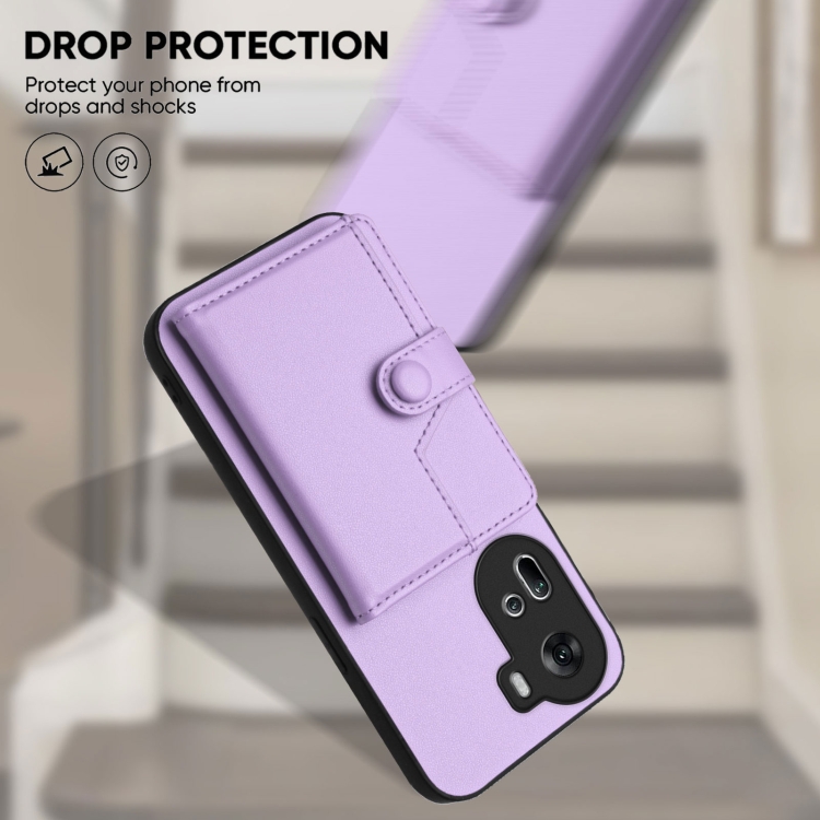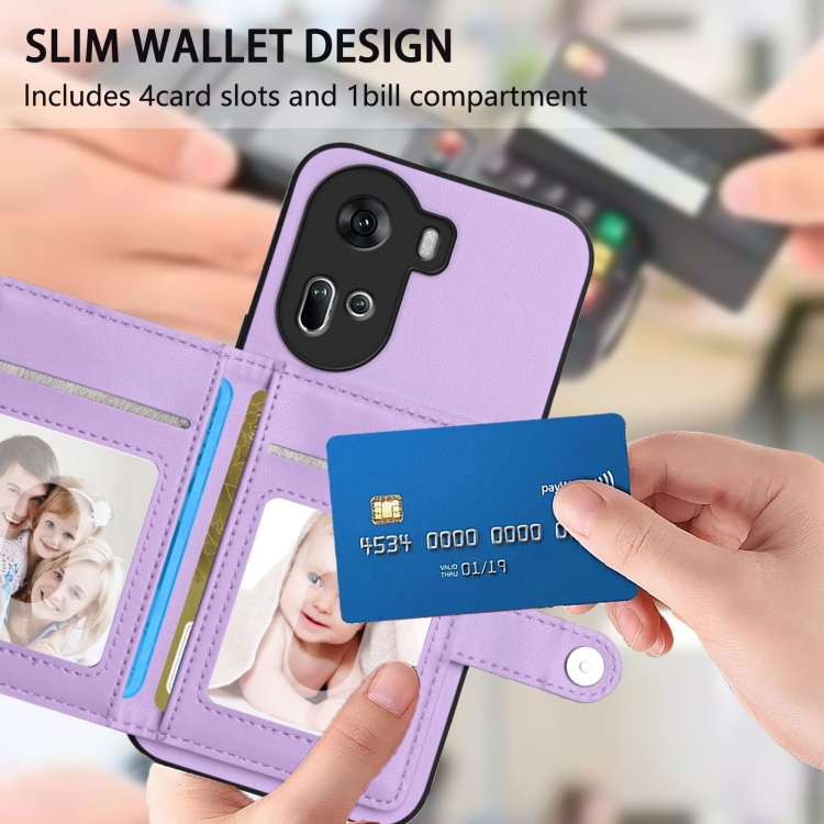 Funda para Teléfono con Botón y TaRJetero Antirrobo Rfid para Oppo Reno11 Global (Morado)