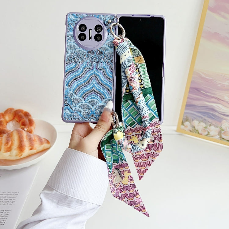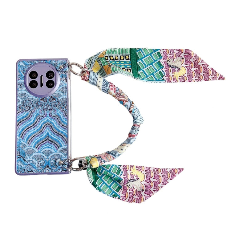 Funda para Teléfono Huawei Mate X3/X5 con Cobertura Total y Bordado de Nubes con Bufanda y Pulsera (Azul)