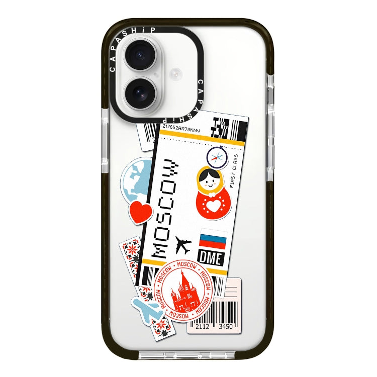 Funda para Teléfono iPhone 16 Cobertura Total Patrón Ilustración Boleto de Viaje B