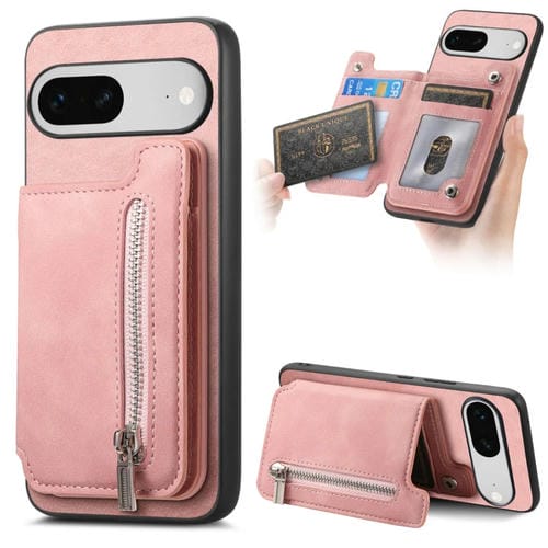 Funda para Teléfono Google Pixel 7 con Cremallera Magsafe, Tarjetero y Cartera (Rosa)