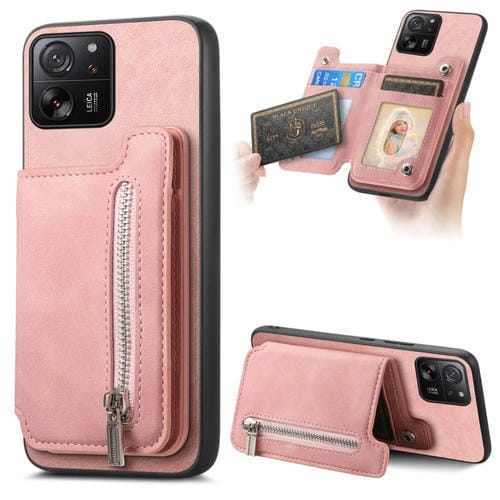 Funda para Teléfono con Cremallera Magsafe Retro para Xiaomi 13T/13T Pro (Rosa)