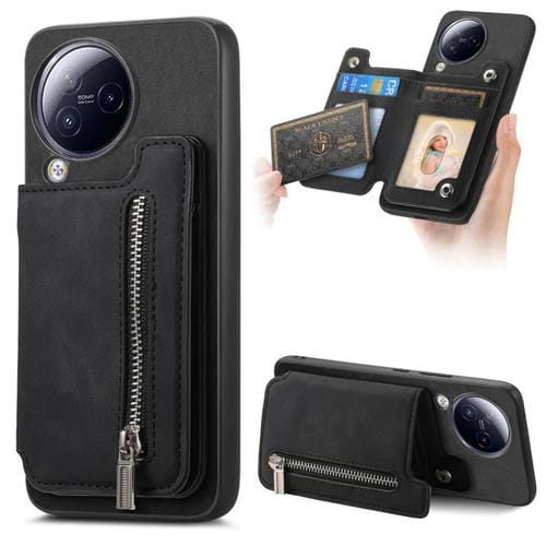 Funda para Teléfono con Cremallera Magsafe Retro para Xiaomi Civi 3 5G (Negra)