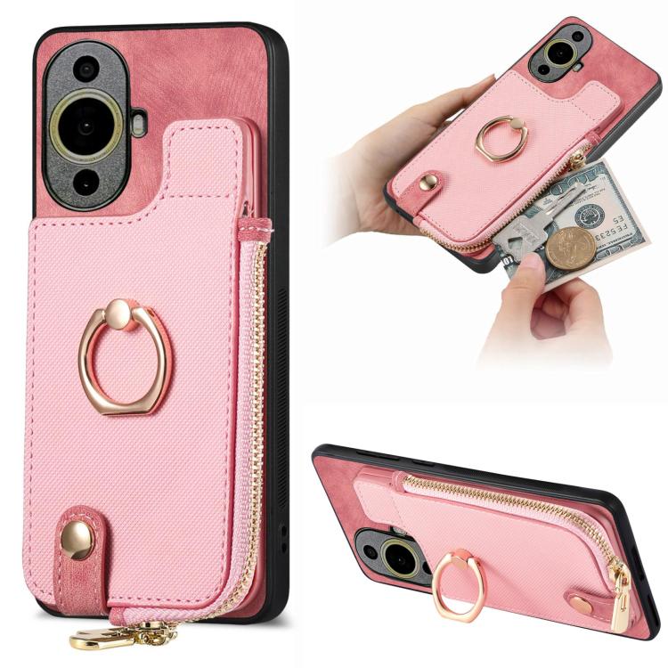 Funda para Teléfono Huawei Nova 11 con Cremallera Vertical y Anillo de Cuero Cruzado (Rosa)