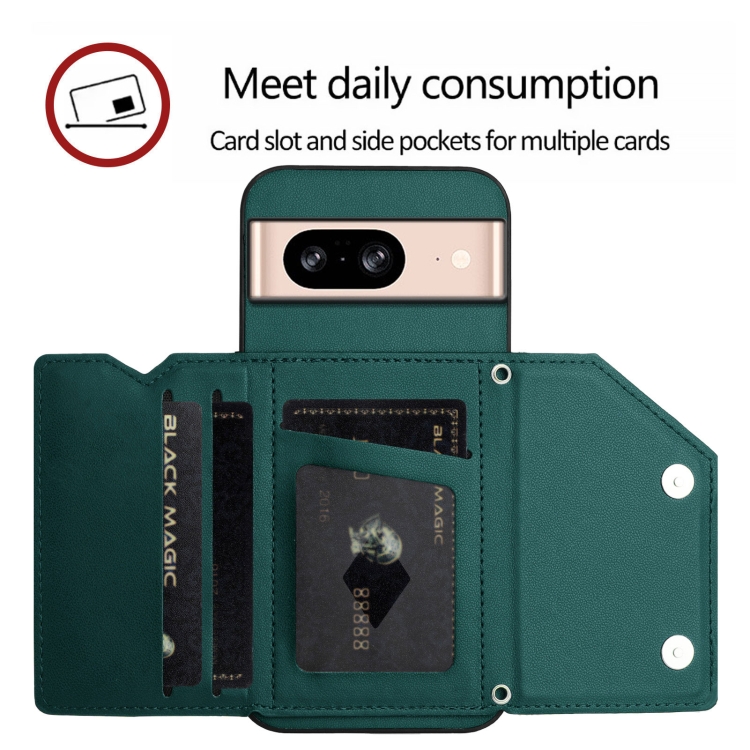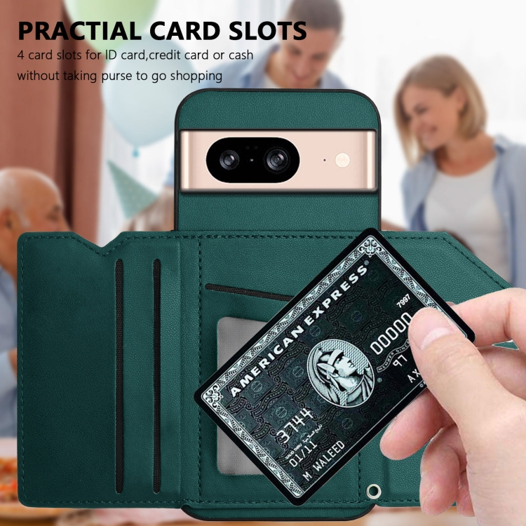 Funda para Teléfono Google Pixel 8 Skin Feel con 4 Ranuras para Tarjetas y Correa (Verde)