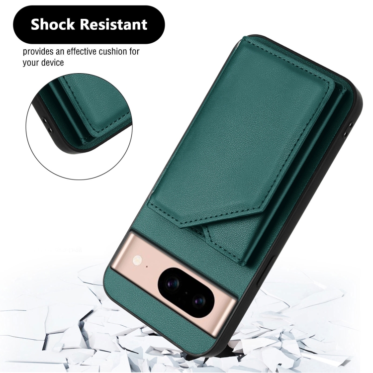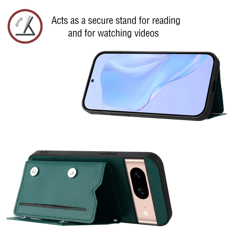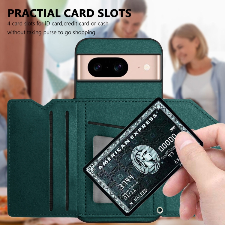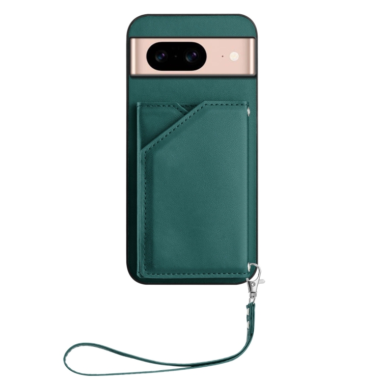 Funda para Teléfono Google Pixel 8A Skin Feel con 4 Ranuras para Tarjetas y Correa para Muñeca (Verde)