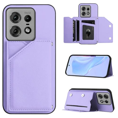 Funda para Motorola Edge 50 Pro con 4 Ranuras para Tarjetas y Correa para Muñeca (Morado)