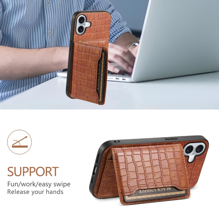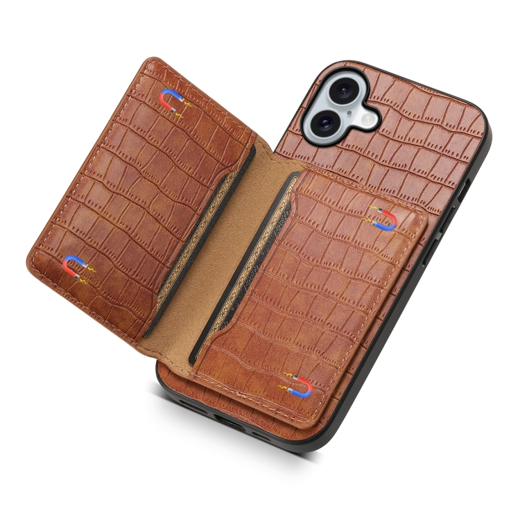 Funda para Teléfono iPhone 16 Diseño de Cartera Textura de Cocodrilo (Marrón)