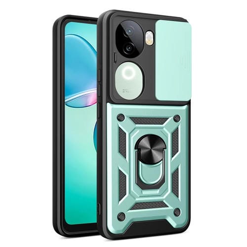 Funda para Teléfono con Diseño de Cubierta Deslizante para Cámara Global para Vivo Iqoo Z9S 5G TPU + PC (Verde)