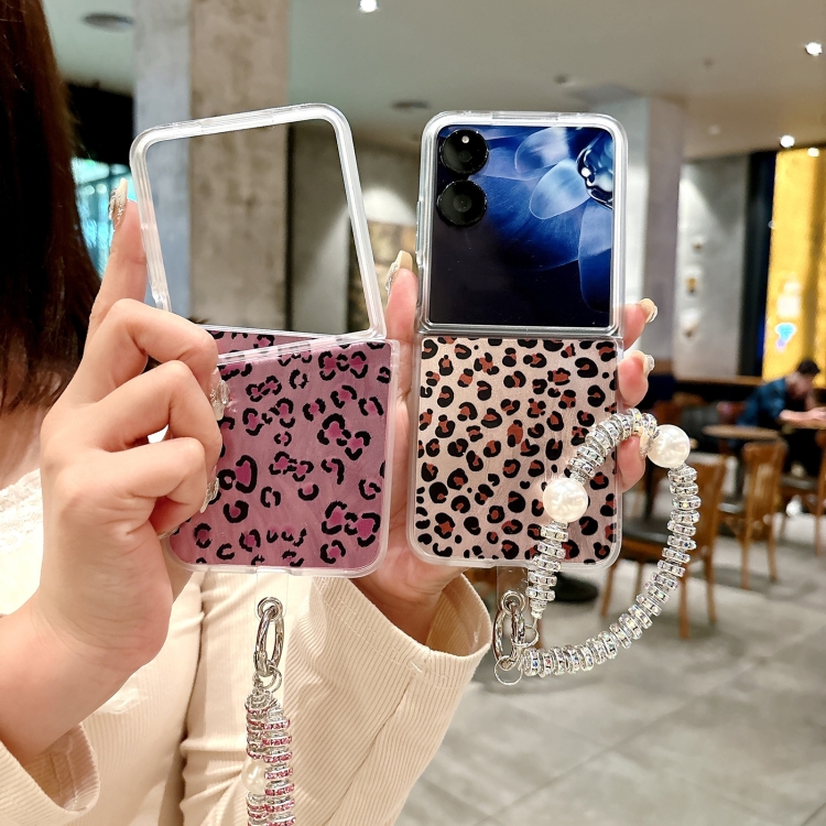 Funda para Teléfono con Diseño de Leopardo y Plumas para Xiaomi Mix Flip Integrada con Pulsera (Marrón)