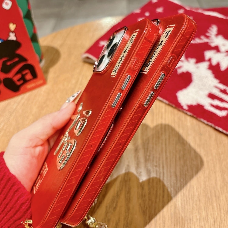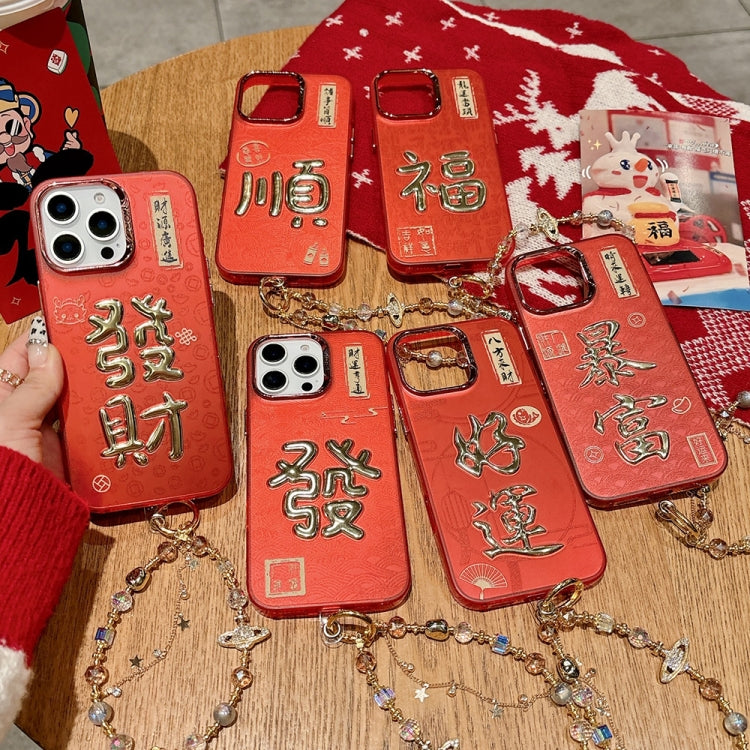 Funda para Teléfono Get Rich iPhone 14 Pro Max Estampado Dorado 3D Imd Cadena de Cristal