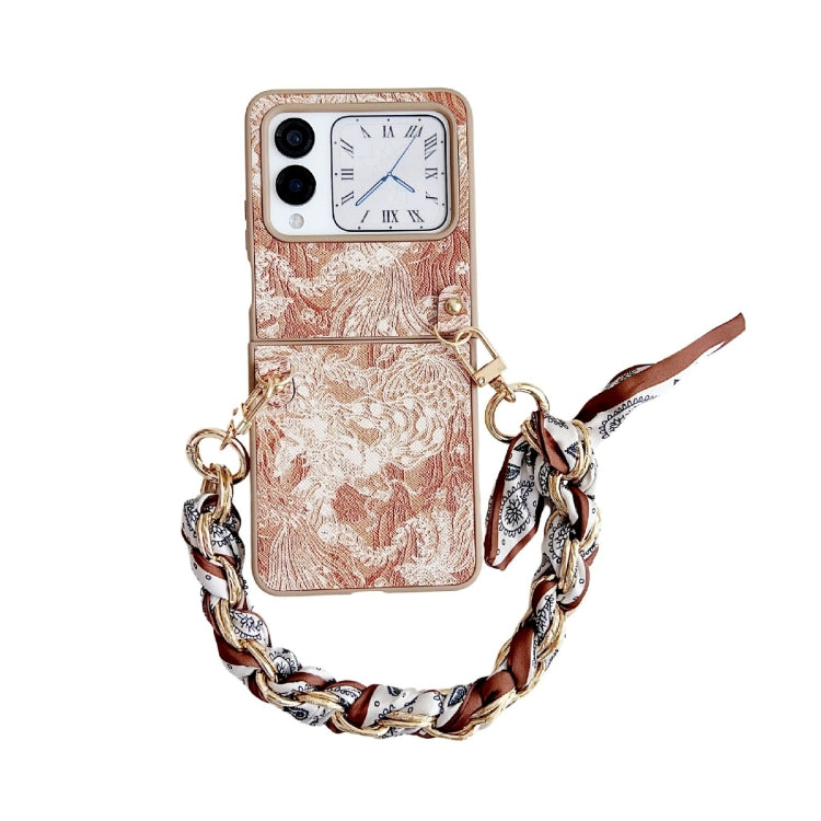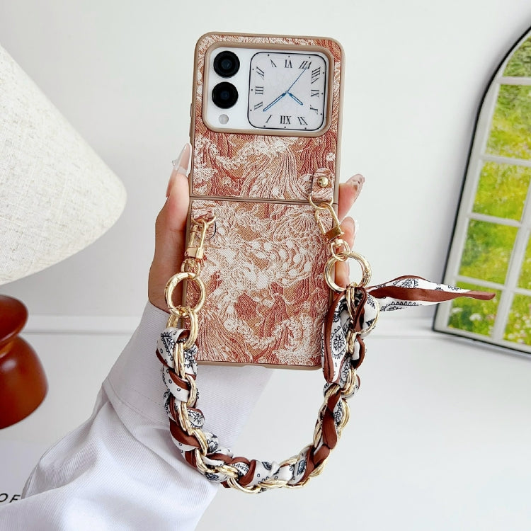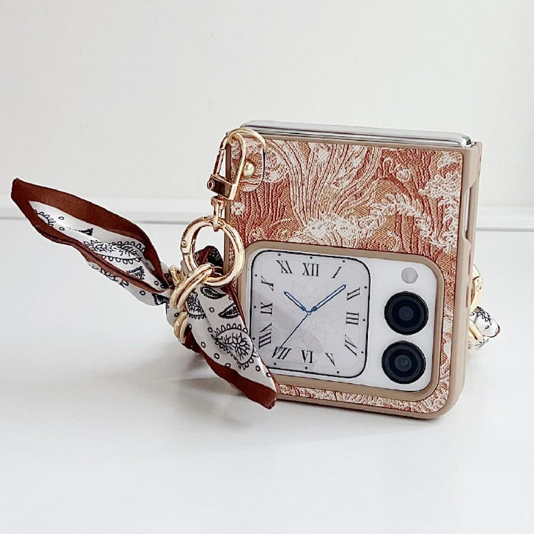 Funda para Teléfono Huawei Nova Flip Cobertura Total Bordado Diy con Bufanda y Pulsera (Naranja)