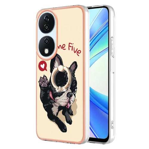 Funda para Honor X7B 4G/5G con Galvanoplastia IMD Doble Cara y Soporte para Anillo (Perro de la Suerte)