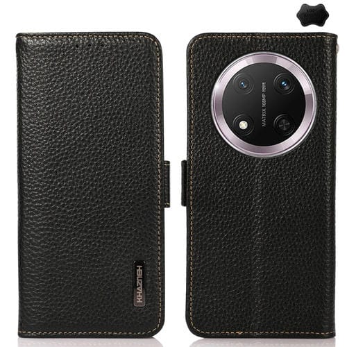 Funda para Teléfono Cuero Genuino Lichi Honor X9C Khazneh con Imán Lateral y Rfid (Negro)
