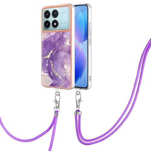 Funda para Teléfono con Imd de Doble Cara con Galvanoplastia de Mármol para Xiaomi Poco F6 Pro 5G con Cordón (Púrpura 002)