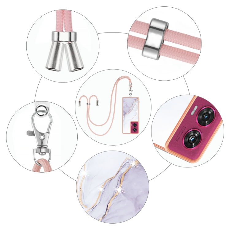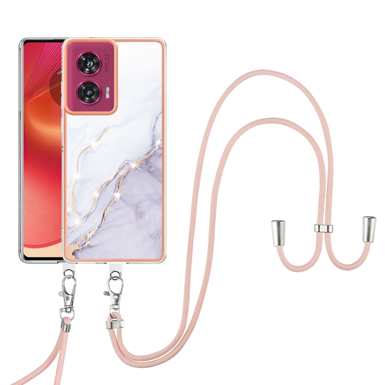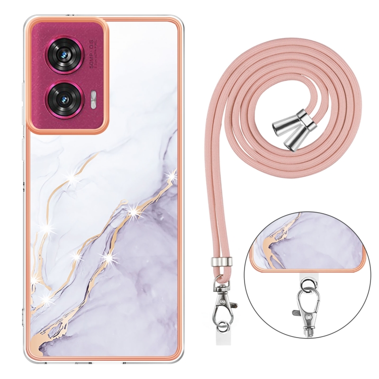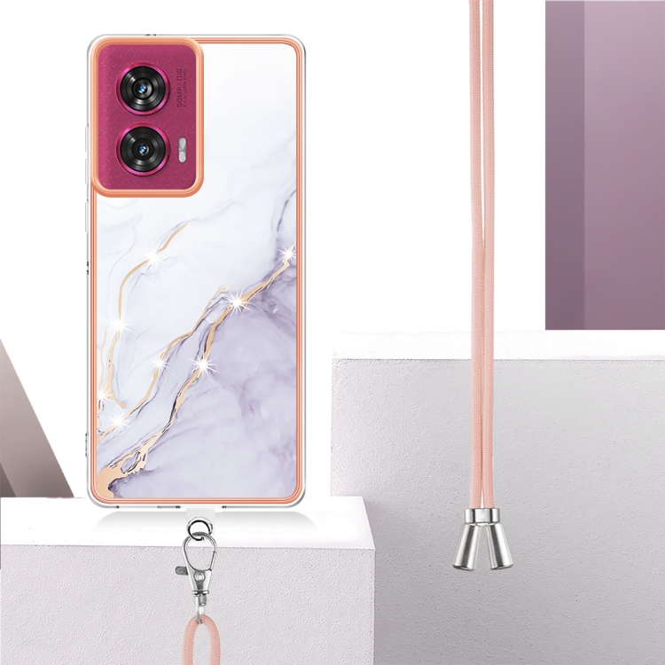 Funda para Teléfono Motorola Edge 50 Fusion con Imd Doble Cara, Galvanoplastia Mármol y Cordón (Blanco)