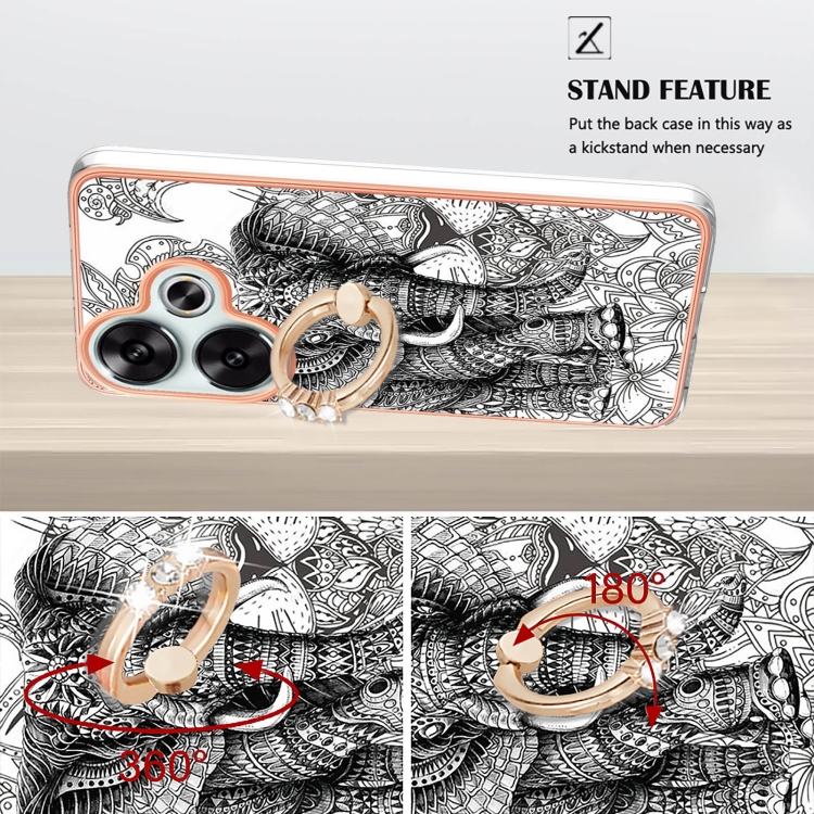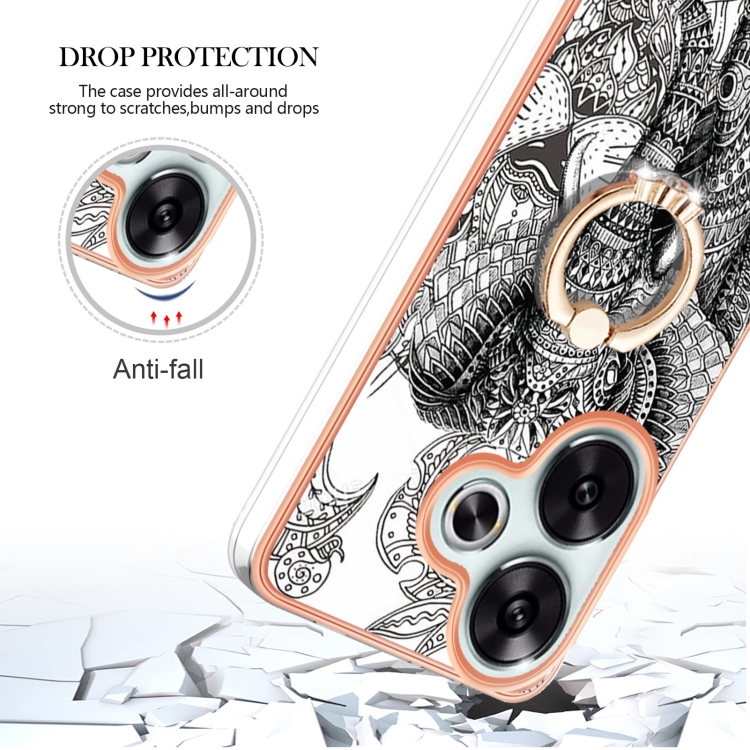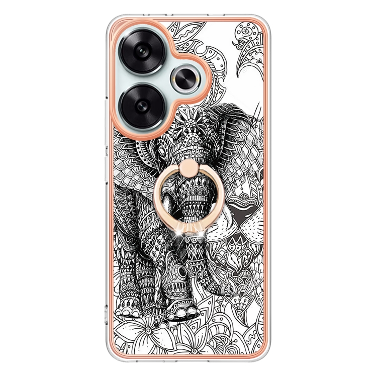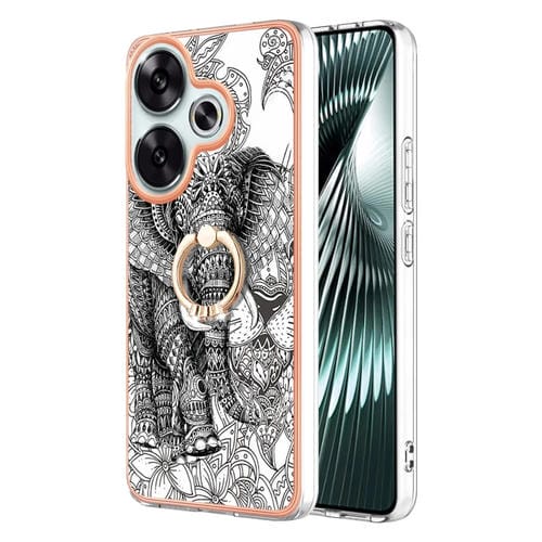 Funda para Teléfono con Imd de Doble Cara Galvanizada para Xiaomi Poco F6 5G con Soporte para Anillo (Elefante Tótem)