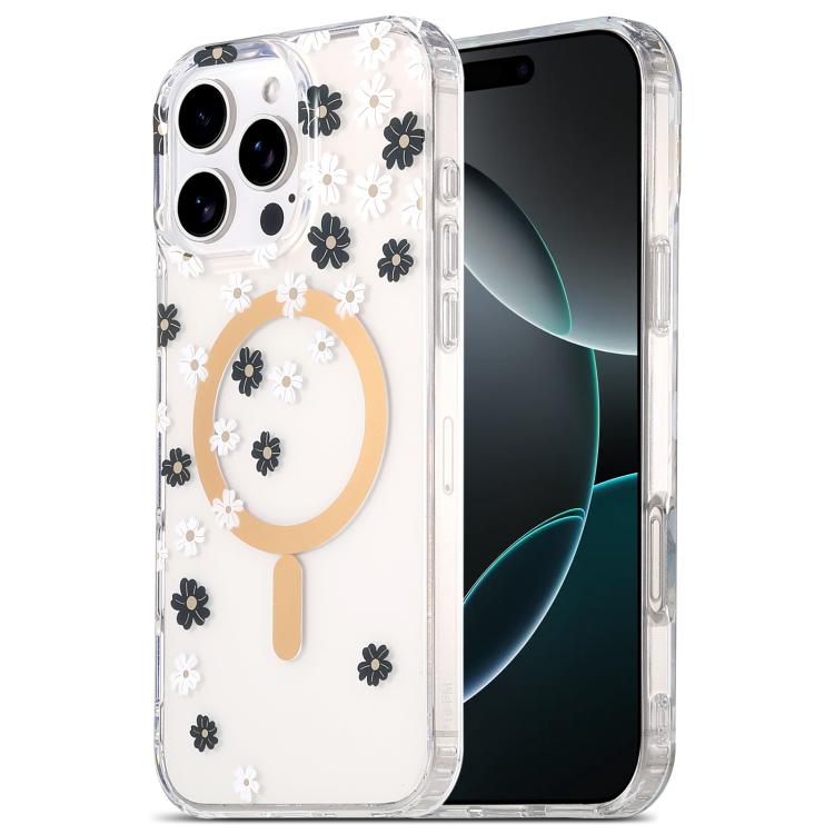 Funda para Teléfono IMD Magsafe iPhone 16 Pro Max Laminado Doble Cara (Margarita) (Blanco y Negro)