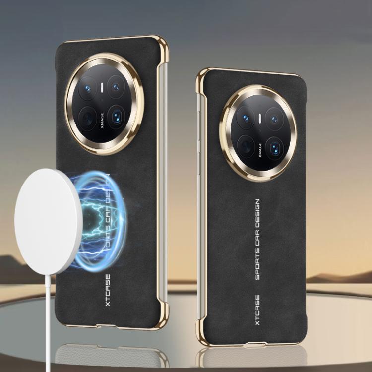 Funda para Teléfono Gkk de Cuero Galvanizado con Magsafe sin Bordes para Huawei Mate 70 Pro (Negro Mate)