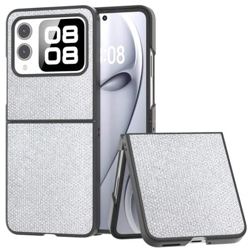 Funda para Teléfono Huawei Nova Flip con Marco Negro y Diamantes (Plata)