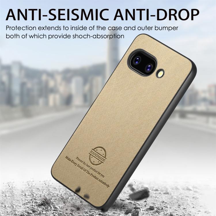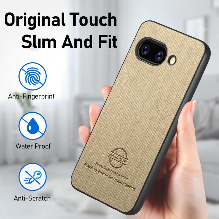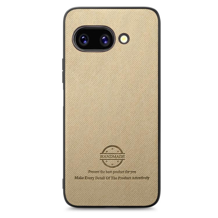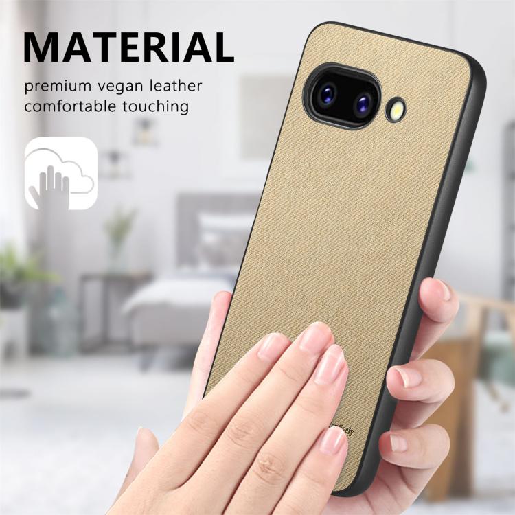 Funda para Teléfono Google Pixel 9A con Parte Trasera de Piel y Tejido de Sarga (Caqui)