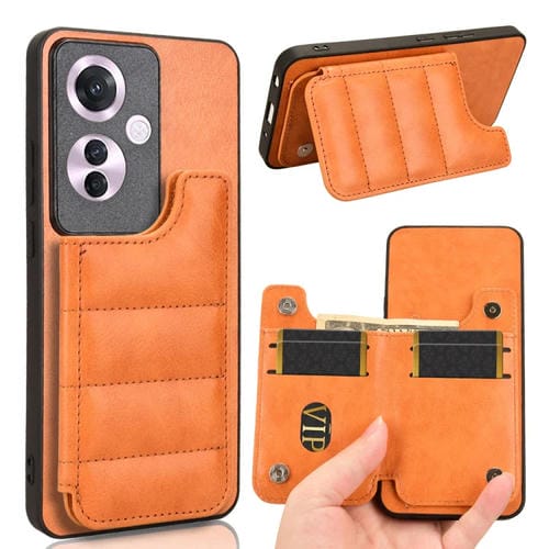 Funda para Teléfono con Patrón de Vaca para Oppo Reno11 A, Versión Japonesa, con Tarjeta de Costura (Naranja)