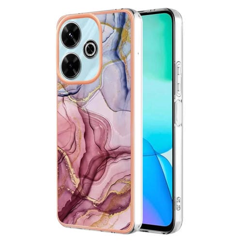 Funda para Teléfono con Revestimiento Electrolítico de Mármol de Doble Cara Imd para Redmi 13 4G (Rosa Roja 014)