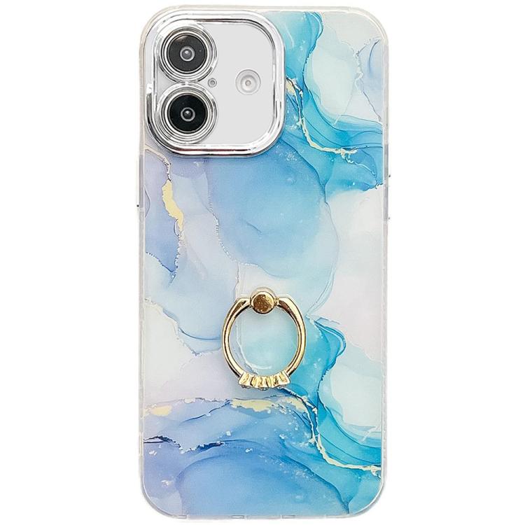 Funda para Teléfono iPhone 16 Soporte de Anillo Textura Mármol Galvanizado (Azul y Verde)
