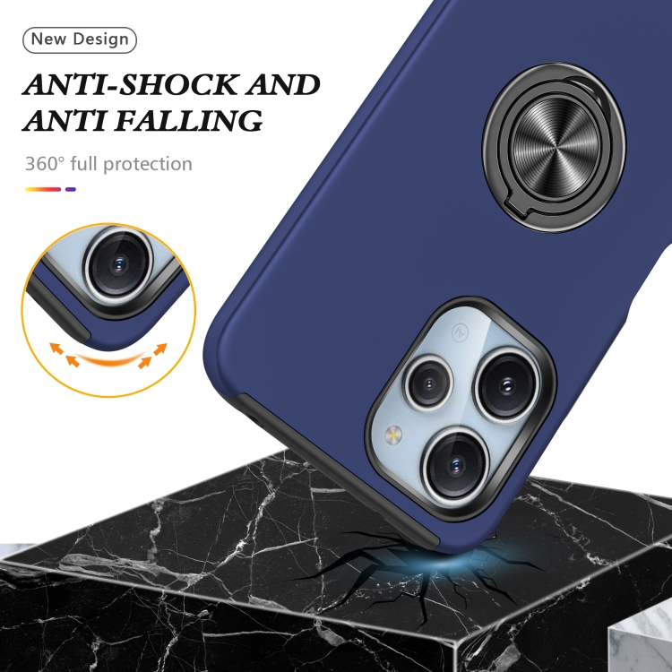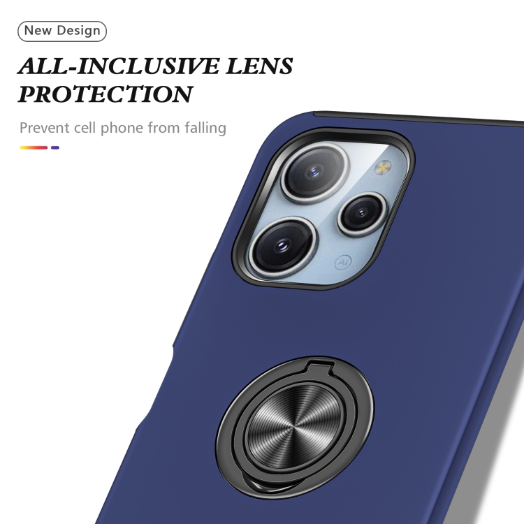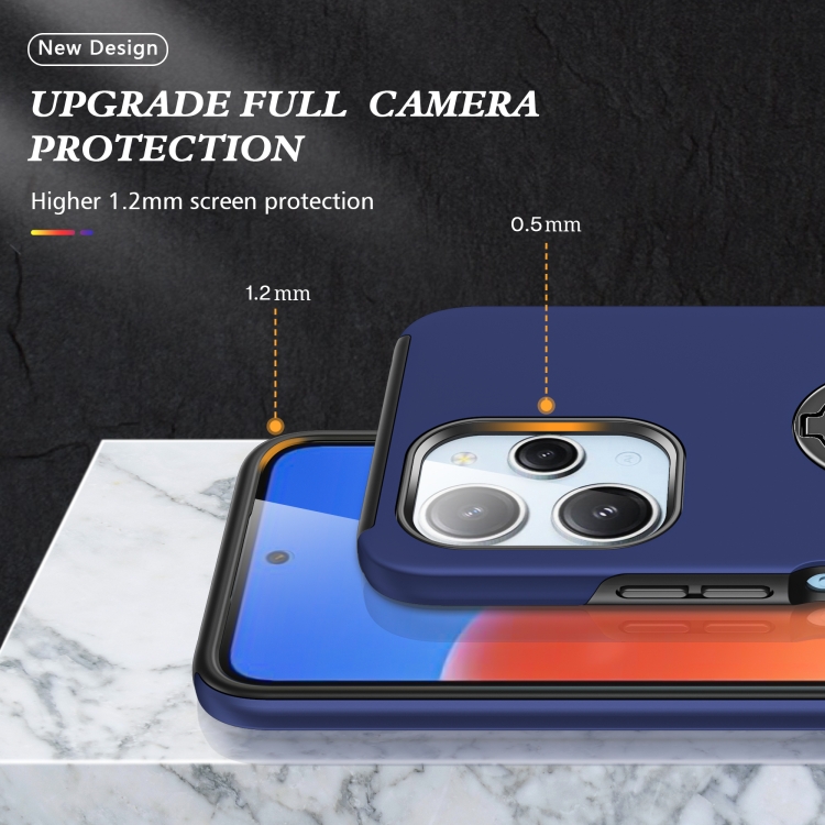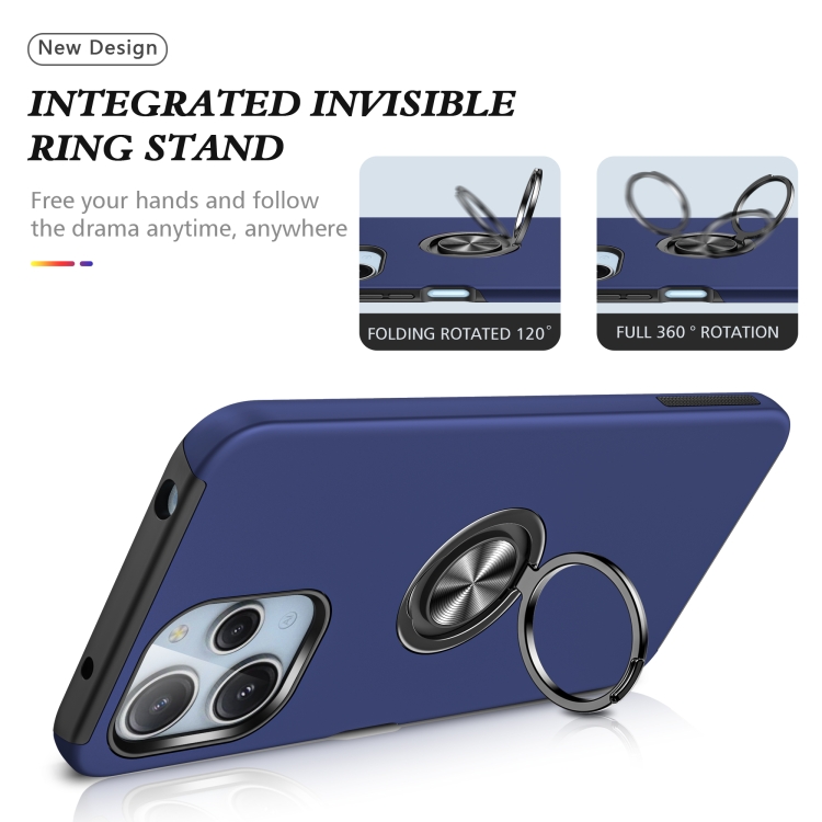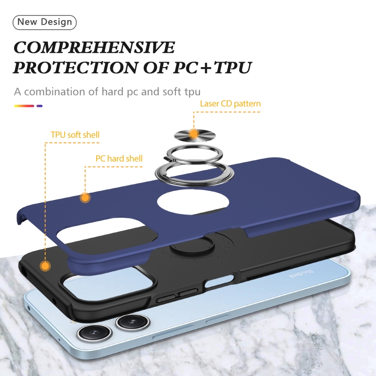 Funda para Teléfono con Soporte de Anillo Magnético Híbrido de TPU para Redmi 12 4G PC (Azul Marino)
