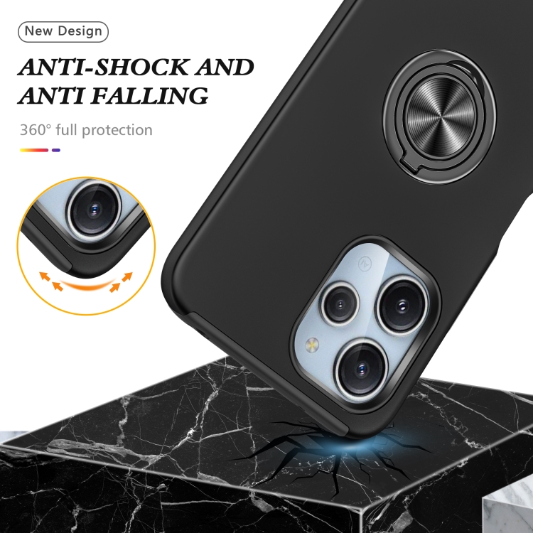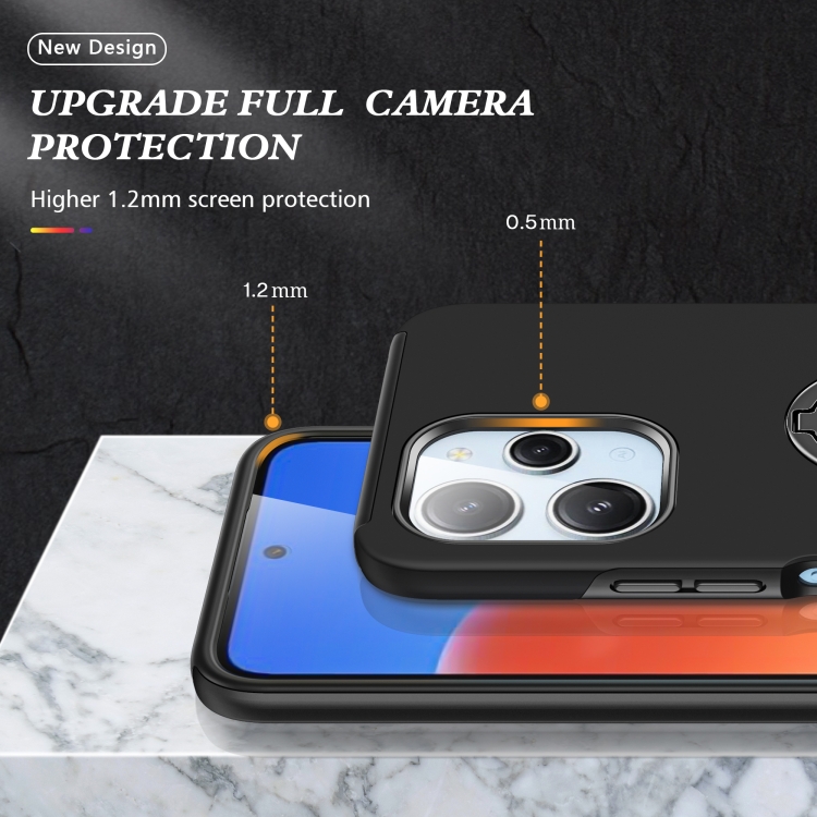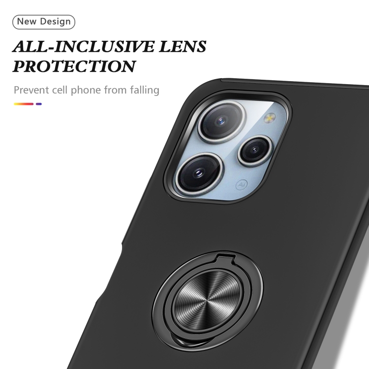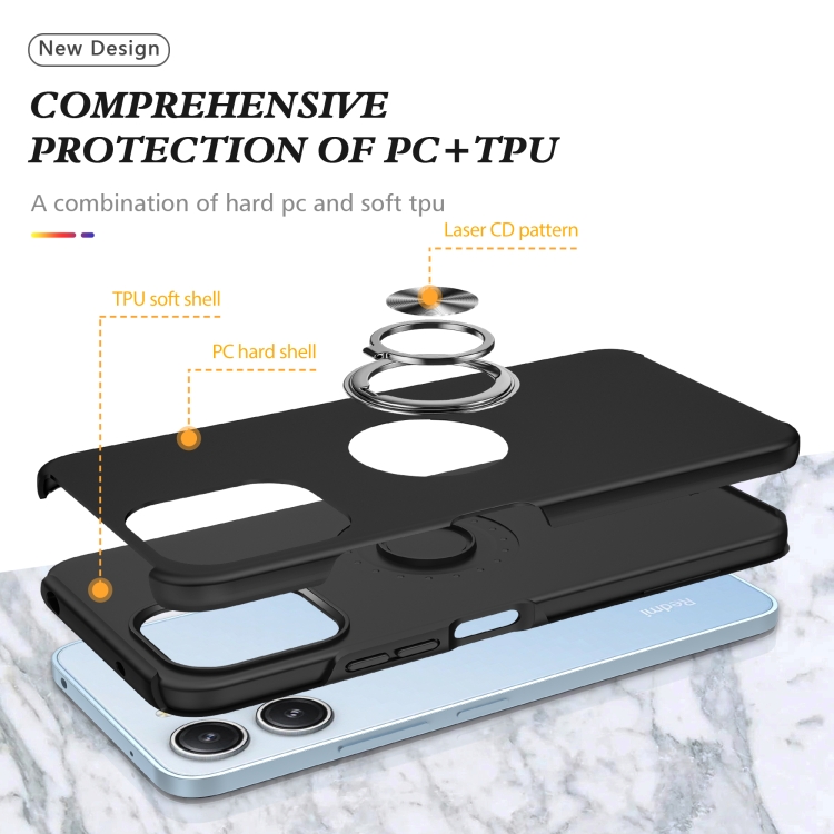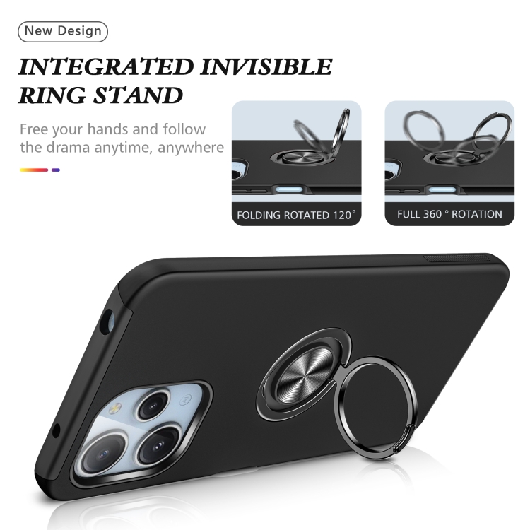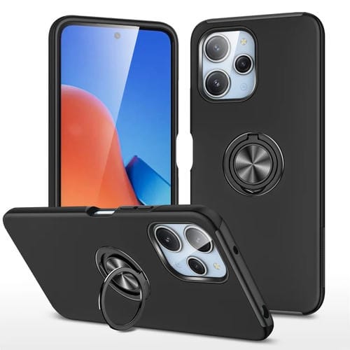 Funda para Teléfono con Soporte de Anillo Magnético Híbrido de TPU para Redmi 12 4G PC (Negro)