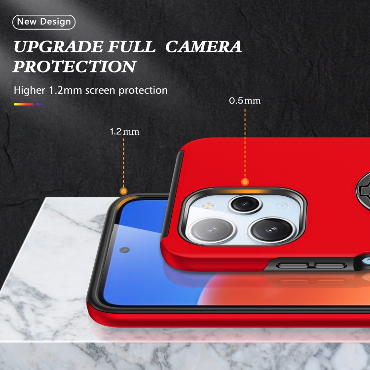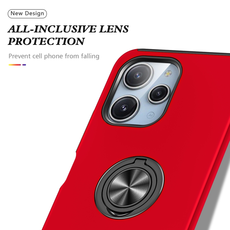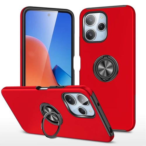 Funda para Teléfono con Soporte de Anillo Magnético Híbrido de TPU para Redmi 12 4G PC (Rojo)
