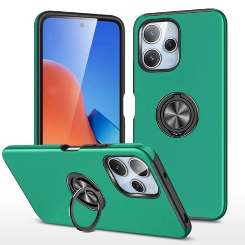 Funda para Teléfono con Soporte de Anillo Magnético Híbrido de TPU para Redmi 12 4G PC (Verde Oscuro)