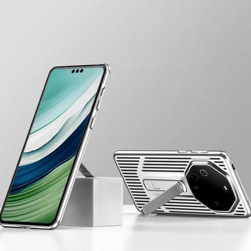 - 1x Funda para Teléfono Huawei Mate 60 Pro con Soporte de Refrigeración (Blanco Plateado)