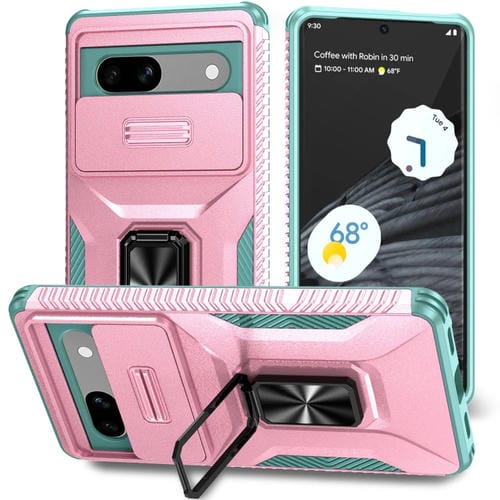 Funda para Teléfono Camshield con Soporte Deslizante para Google Pixel 7A (Rosa + Gris Verde)