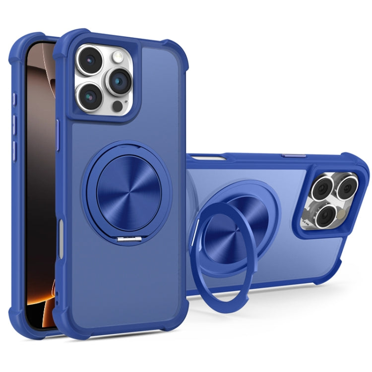 Funda para Teléfono iPhone 16 Pro Max Magsafe Soporte Giratorio 360 Textura Cd (Azul)