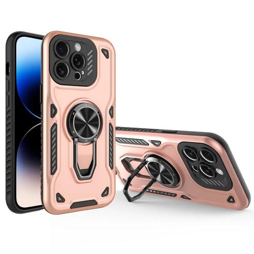 Funda para Teléfono TPU + PC Magnético con Soporte Giratorio Metal para iPhone 14 Pro Max (Dorado)
