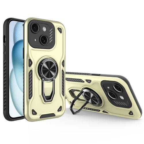 Funda para Teléfono iPhone 15 TPU PC Soporte Giratorio Metal (Beige)