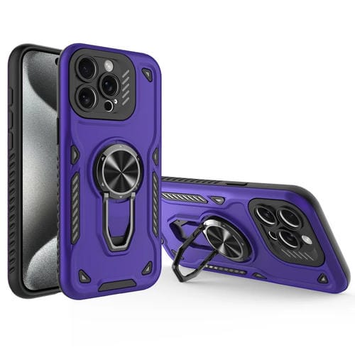 Funda para Teléfono iPhone 15 Pro Max Soporte Giratorio Metal TPU PC (Morado Oscuro)