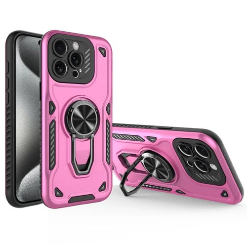 Funda para Teléfono iPhone 15 Pro Max Soporte Giratorio Metal TPU PC (Rosa y Morado)
