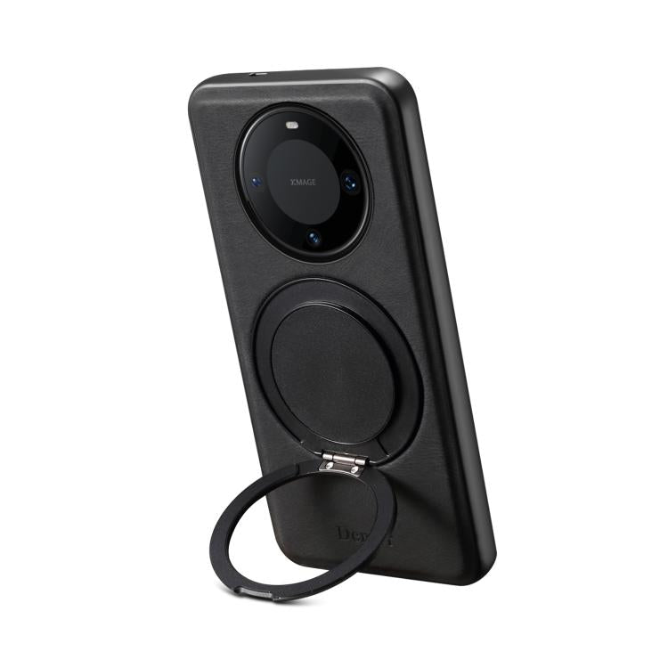 Funda para Teléfono Denior A14 con Soporte Giratorio Magsafe y Tacto de Piel para Huawei Mate 60 Pro/60 Pro+ (Negra)