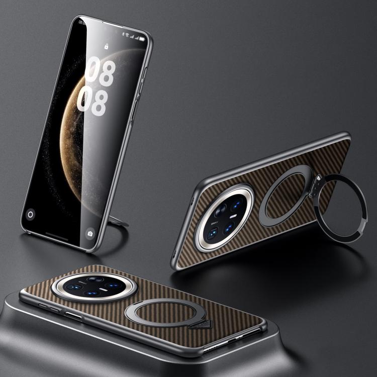 Funda para Teléfono Huawei Mate 70 Pro / Mate 70 Pro+ con Soporte Magnético Magsafe y Textura Kevlar (Marrón)