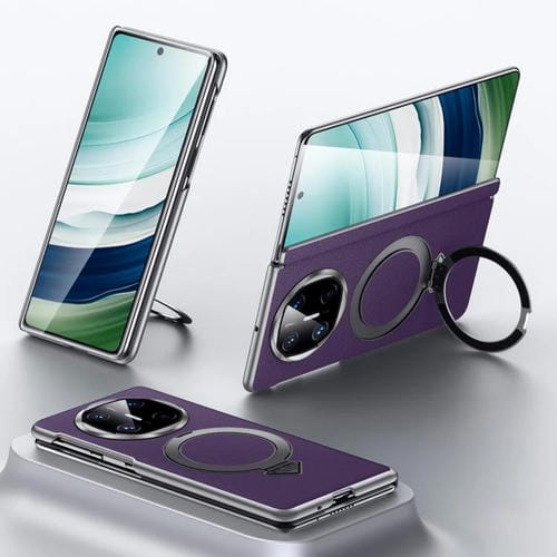 Funda para Teléfono Sulada con Soporte Magnético Magsafe de Cuero de Grano Superior para Huawei Mate X6 (Morado)