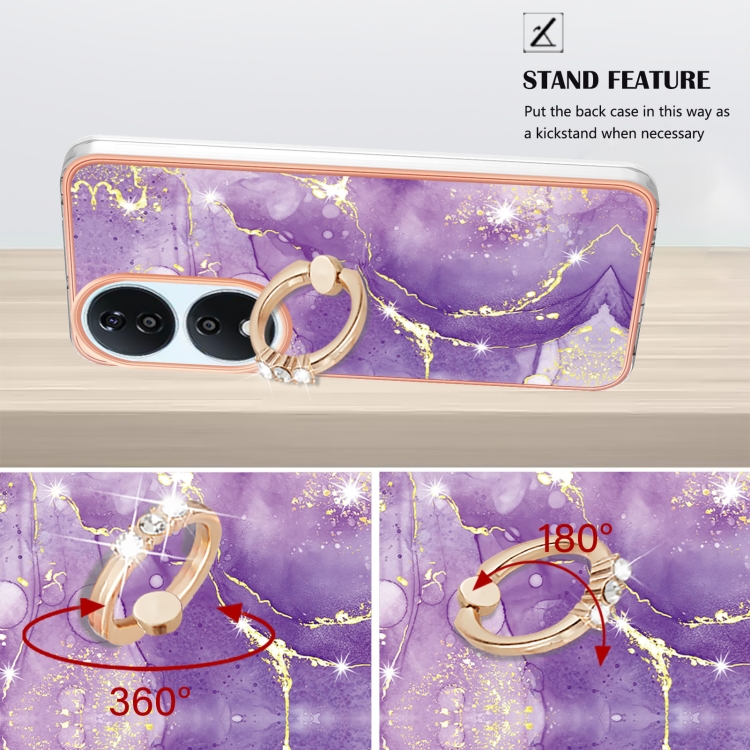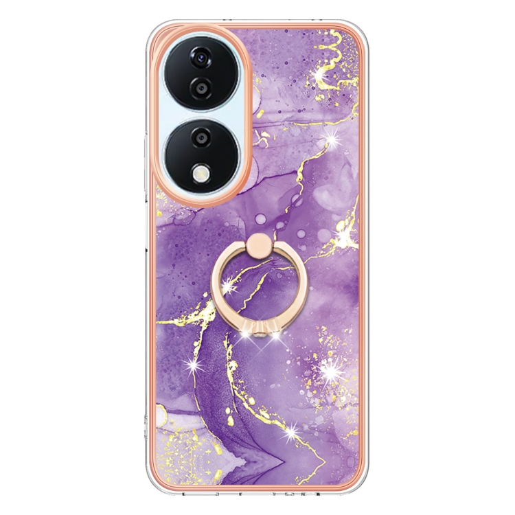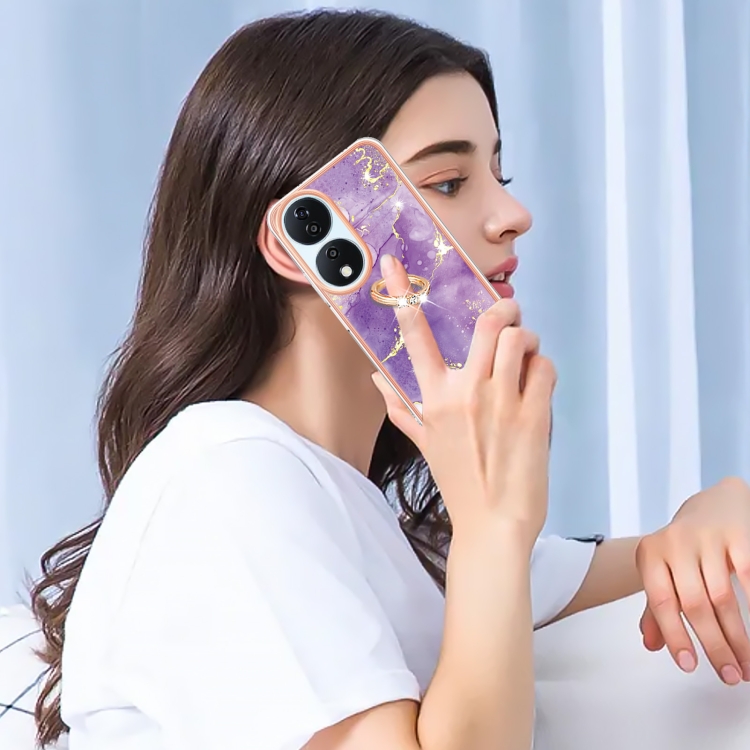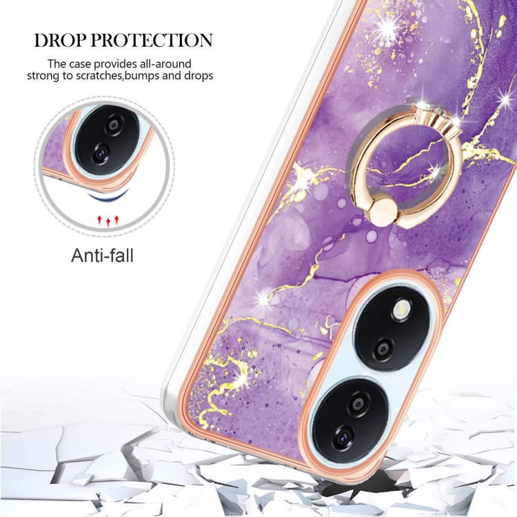 Funda para Teléfono Honor X7B 4G/5G con Soporte Anillo Revestimiento Mármol TPU (Púrpura)