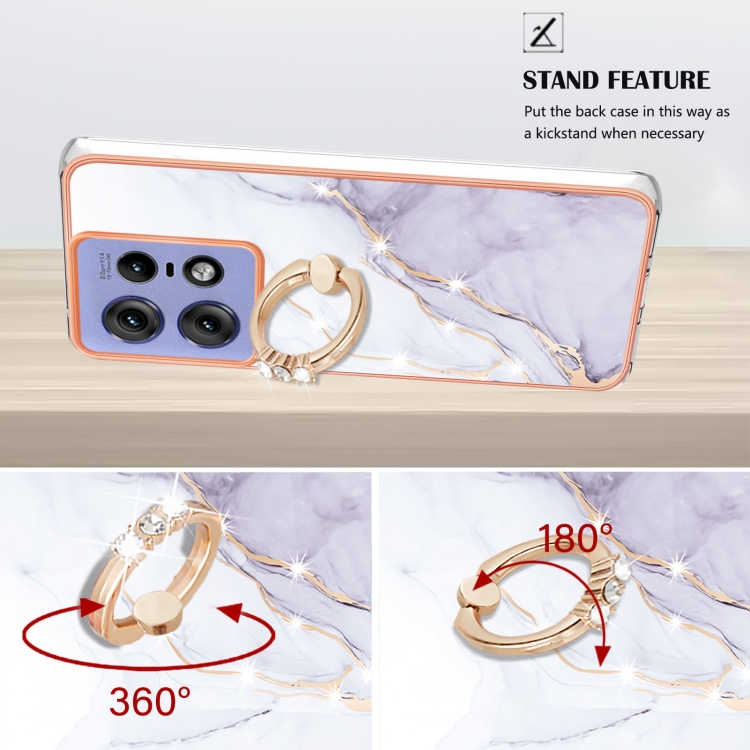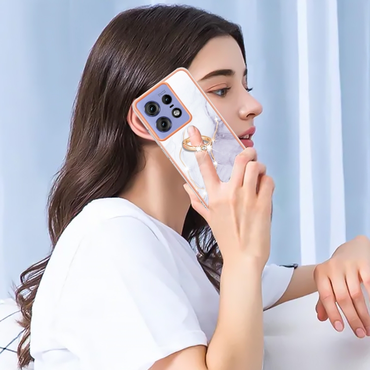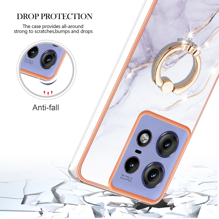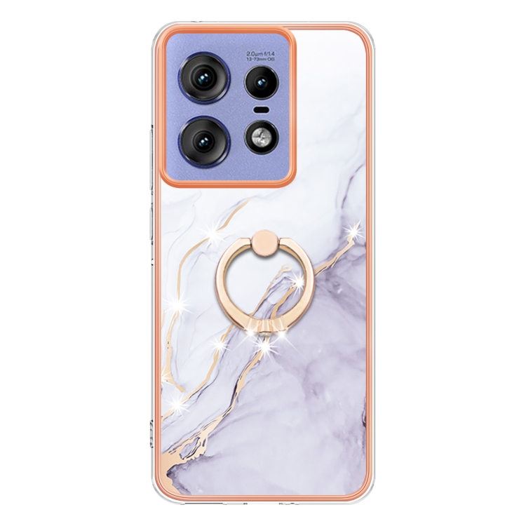 Funda para Teléfono Motorola Edge 50 Pro con Soporte para Anillo y Revestimiento Mármol TPU (Blanco)