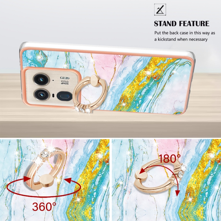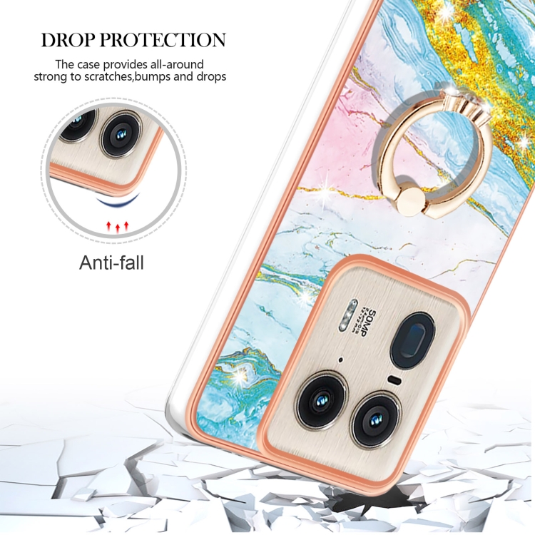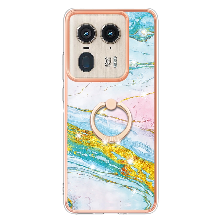 Funda para Teléfono Motorola Edge 50 Ultra con Soporte para Anillo y Revestimiento Mármol Imd TPU (Verde)